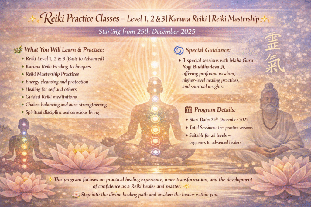 This Reiki Practice and Advanced Training Program is a must-attend journey for all Reiki Masters who have already been initiated into Reiki Mastership. This program has been specially designed to deepen your healing abilities, refine your teaching skills, and elevate your spiritual wisdom under the guidance of Guru Ji.